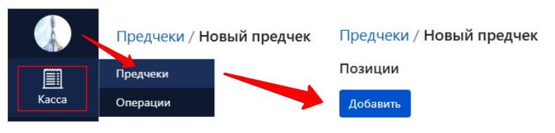 Создайте предчек с одной позицией Тест. Для этого зайдите в раздел Касса → Предчеки и нажмите Добавить → Новый предчек.